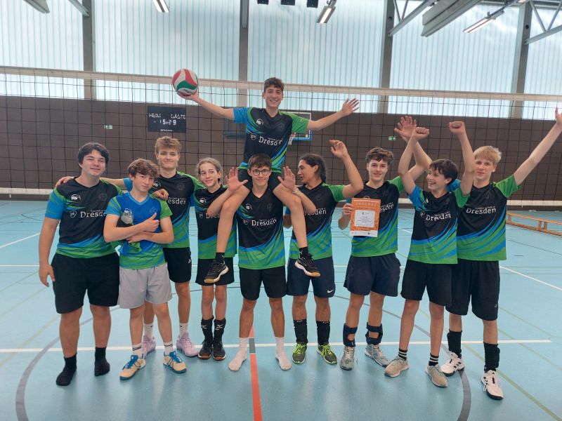 Die Herren hatten es gleich zu Beginn mit einem schweren Gegner zu tun, als sie auf das Hülße-Gymnasium trafen. Um ins Spiel zu kommen, brauchten sie ein wenig länger, daher ging der erste Satz an den Gegner. Im zweiten Satz spielten sie routinierter und Adrian hatte am Zuspiel viele Optionen, die oft mit der richtigen Übersicht die Lücken beim Gegner ausmachten. Beide folgende Sätze konnte das MCG für sich entscheiden und erstmal aufatmen. Es ging nahtlos weiter gegen die IBB, die hier das erste Mal Turnierluft schnupperte und sich wacker schlug, aber gegen die jetzt wirklich top aufspielenden Herren des MCG nichts entgegnen konnten. 2:0 nach Sätzen und dem Weiterkommen ein Stück näher. Aber es folgte der Erzrivale mit dem Tschirnhaus und hier gab es wieder spektakuläre Ballwechsel zu sehen. Die Abwehr des MCG war phänomenal und gerade der Block wurde wieder und wieder zum klaren Retter gegen ein sehr gutes Angriffsspiel des Gegners. Leider verletzte sich Moritz bei diesem Spiel und die Lücke wurde durch Jonas aufgefüllt, der sich trotz anfänglicher Stellungsschwierigkeiten stark ins Spiel einbrachte. Auch Wilhelm konnte in seinem ersten Auftritt als Libero eine glänzende Leistung abliefern. Am Ende stand eine Niederlage in 3 Sätzen auf dem Papier, aber alle Sportler waren heiß auf die letzte Partie gegen die Bürgerwiese. Den ersten Satz brachten sie sicher nach Hause und im zweiten Satz bewiesen sie Nervenstärke, indem sie einen 5-Punkte-Rückstand noch einmal drehten und den letzten Sieg einfuhren. Damit ein glücklicher 2. Platz und die Qualifikation für das Stadtfinale am 26.11.25.