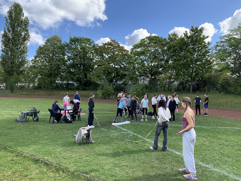 link Sportfest 2025 Kaum war die Leichtathletik-WM in Tokio beendet, richtete sich der leichtathletische Blick auf unser Schulsportfest – und es wurde ein sonniger Blick. In diesem Jahr wurden die Anlagen im Stadion an der Bärensteiner Straße genutzt. Neben den üblichen Disziplinen Sprint, Weitsprung, Schlagballweitwurf und Kugelstoßen konnten sich einige Klassenstufen ersatzweise beim Standweitsprung beweisen, während die Klassenstufe 9 Wettkampfstationen betreute und als Betreuerinnen und Betreuer im Einsatz waren. Glückwünsch an alle Teilnehmerinnen und Teilnehmer und Gratulation an alle, die ihre persönlichen Bestwerte verbessern konnten und vielleicht als Bonus noch auf dem Podium bei der Siegerehrung standen.